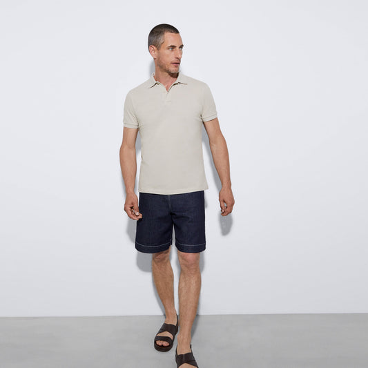 Light Grey Cotton Pique Two Button Polo Shirt