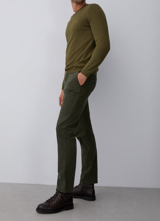 Green V-Neck Sweater In Merino Wool