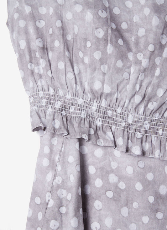 Grey/Blue Short Sleeve Japanese Blouse In Lyocell