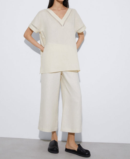 Light Cream Responsible Linen Culotte Trousers