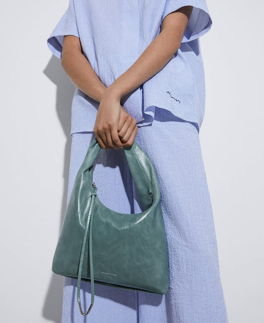 Light Green Semi-Gloss Crackled Leather Long Bag