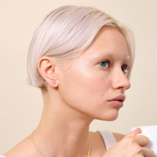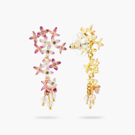 Lilac Flower And Cut Crystal Bead Earrings | ATPO1041