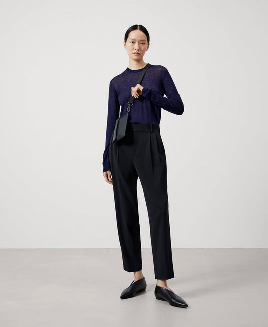 Navy Blue Womens Merino Wool Crew Neck Sweater