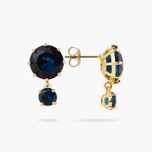 Ocean Blue Diamantine 2 Round Stone Sleeper Earrings | ASLD1261