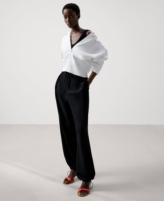 Off White Viscose And Recycled Nylon Bomber Jacket