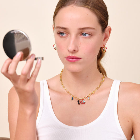 Oval Pink Faceted Stone Pendant Necklace With Zinnias And Daisies | AVJC3041
