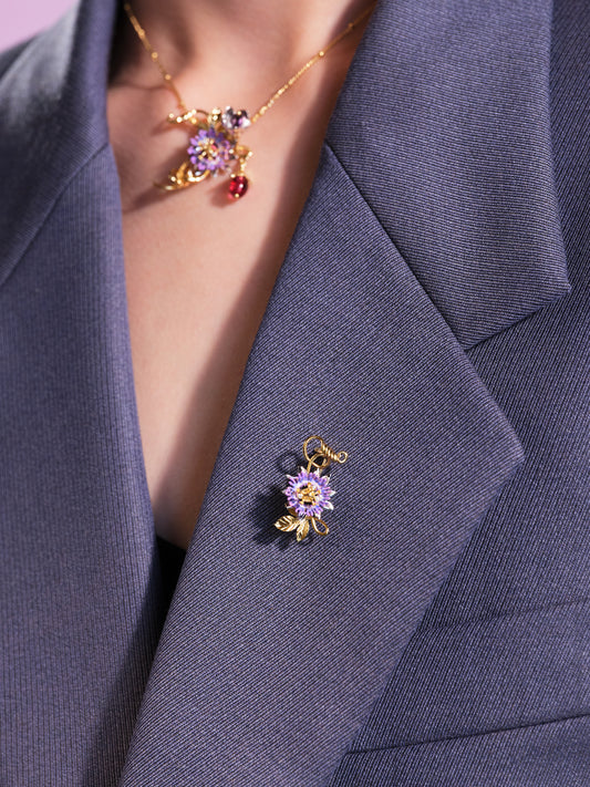 Passion Flower And Crystal Bead Necklace | auvi3021