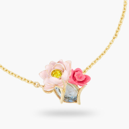 Pink Lotus And Light Blue Pendant Necklace | ASOS3041