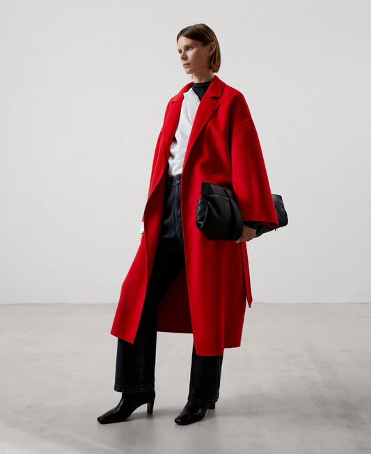 Sold outRed Merino Wool Flared Coat