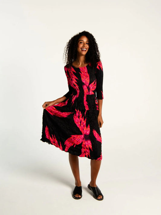 Alquema | 3/4 Sleeve Smash Pocket Dress / Pink Night Dragon