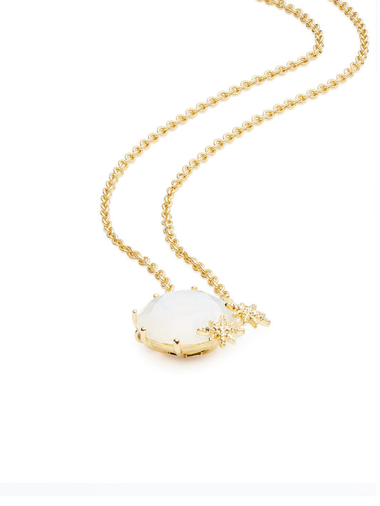 Opalescent White Diamantine Round Stone Pendant Necklace And Fine Stars | auld3012