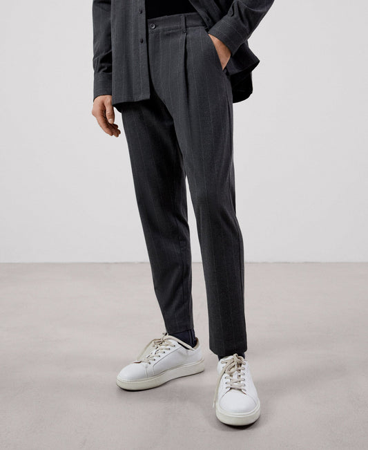 Grey Pleated Ankle Length Trousers