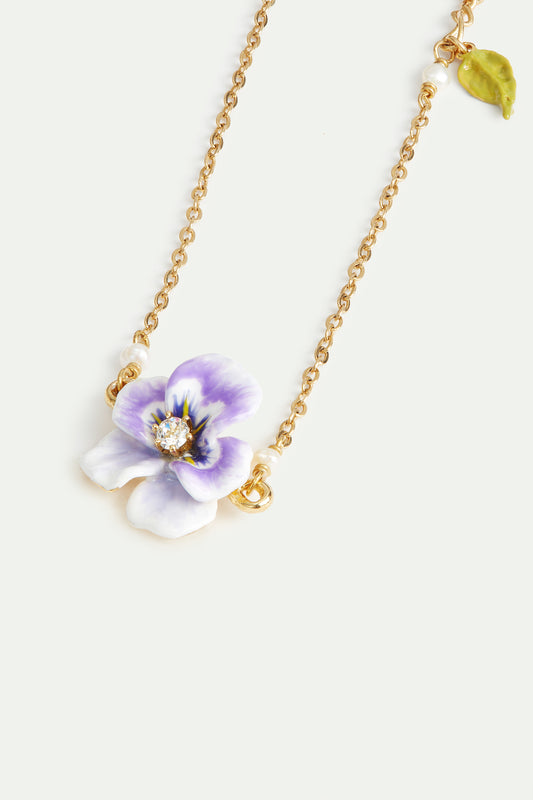 Purple Clematis & Green Emerald-Cut Crystal Pendant