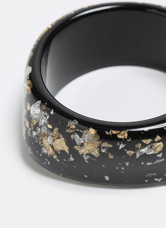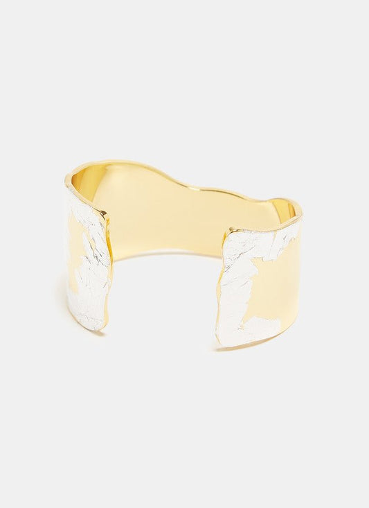 Gold/Chocolate Wood & Metal Rigid Bracelet