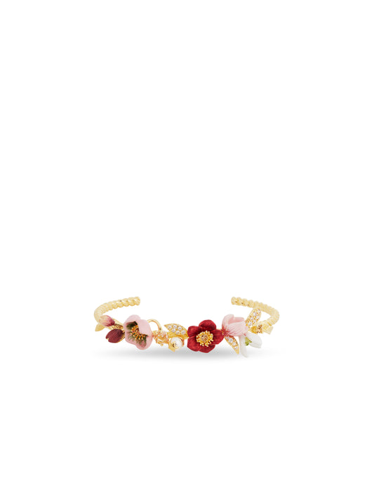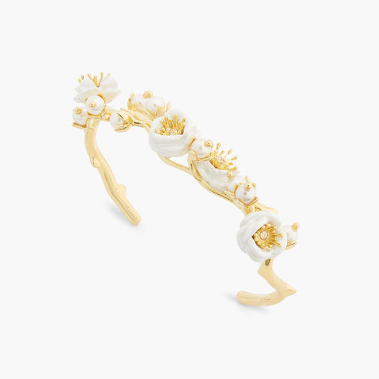 Hellebore Flower & Crystal Pearl Cuff Bracelet