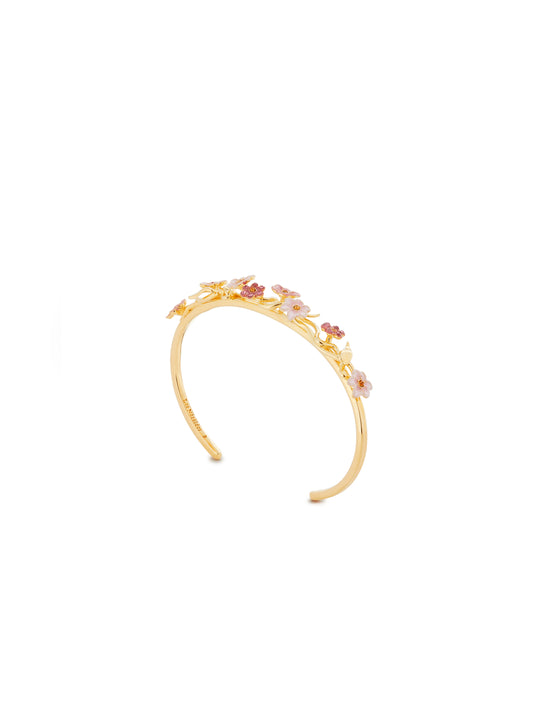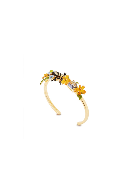Butterfly, Jasmine Flowers And Faceted Crystal Cuff Bracelet