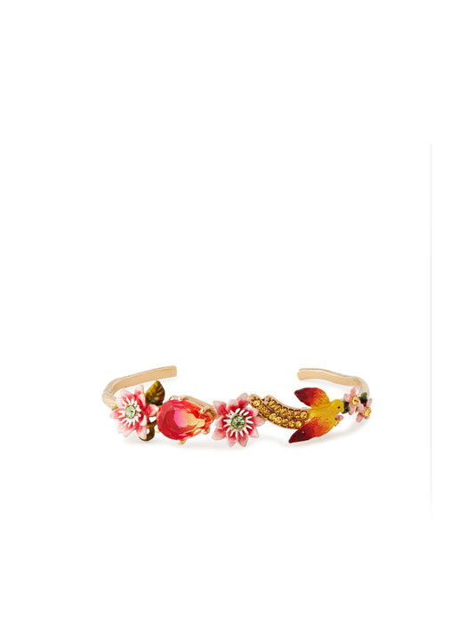 Passion Flower, Budgie And Faceted Crystal Pear Cuff Bracelet