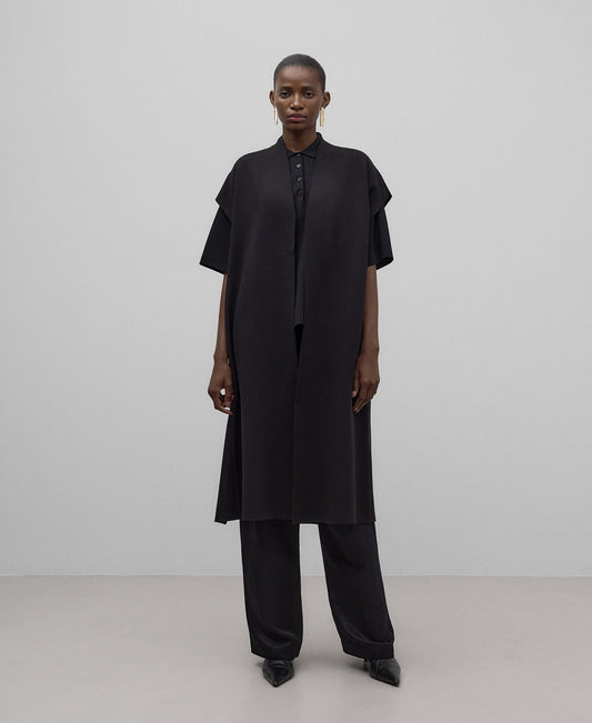 Black Knit Long Vest For Women