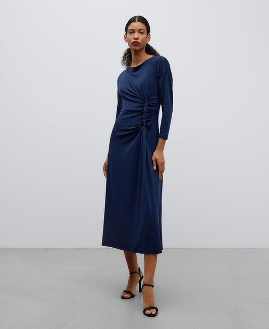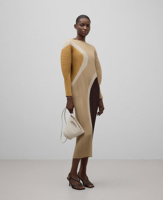 Camel Stamped Midi Dress With Waist Tie And Logo Print