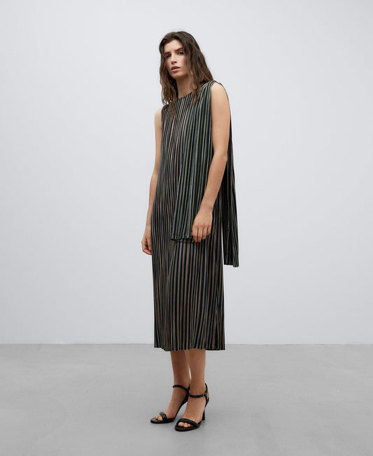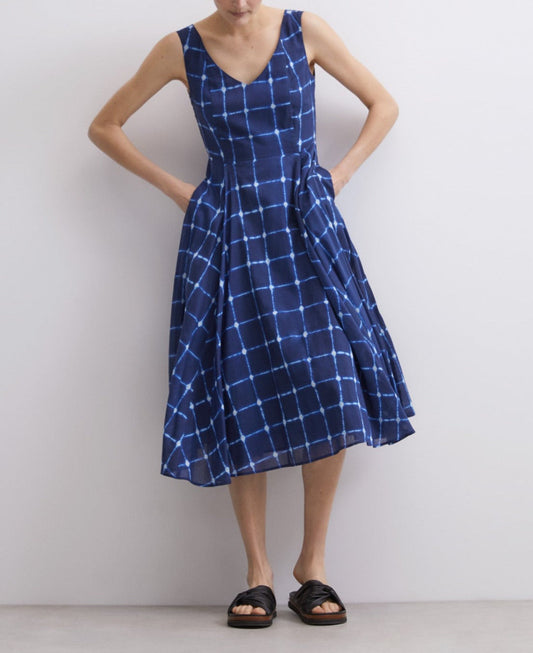 White/Blue Stripe Recycled Crinkle Dress With Bow