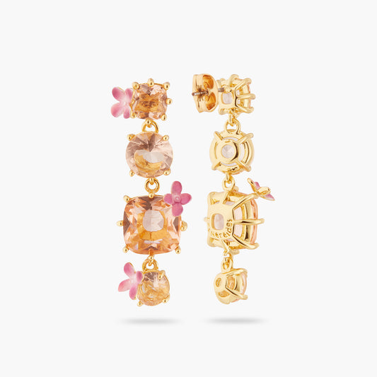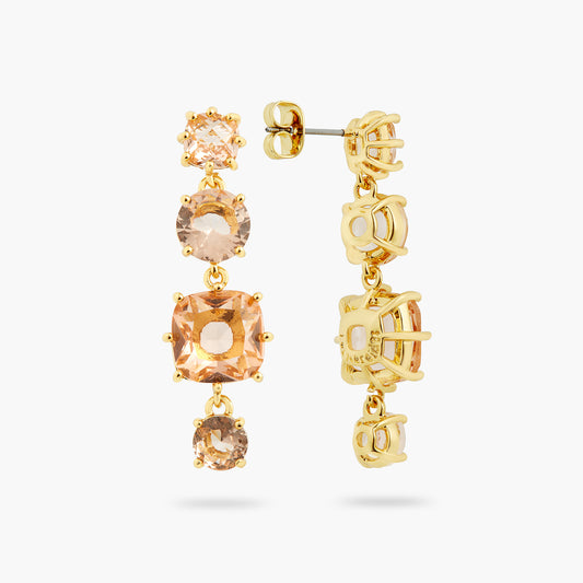 Apricot Pink Diamantine 4 Stone Dangling Earrings