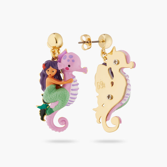 Mermaid, Cut Stone, Seashell Shape Earrings