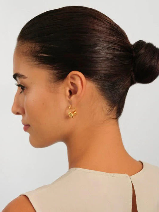 Golden Flower Bouquet And Scarab Beetle Earrings