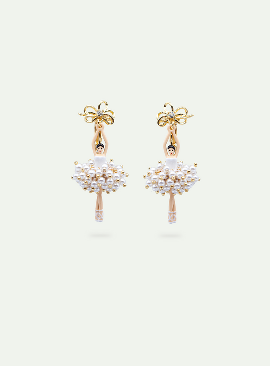 White Tutu And Pink Bow Mini Ballerina Earrings