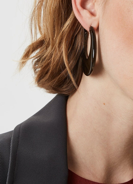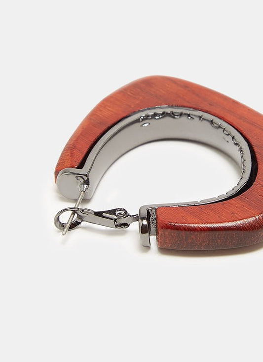 Dark Grey/Red Hoop Earrings With Irregular Wood Piece