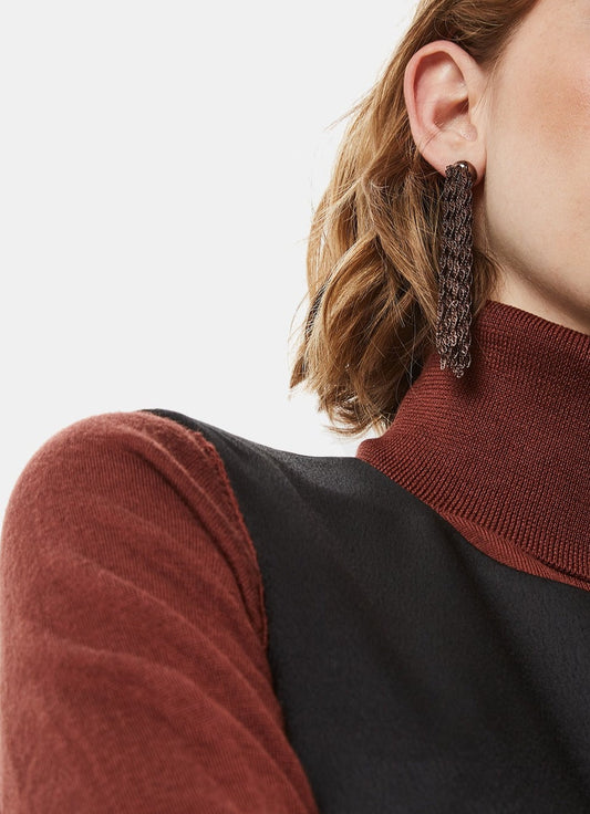 Silver/Gold Multiline Earrings In Bicolour Metal