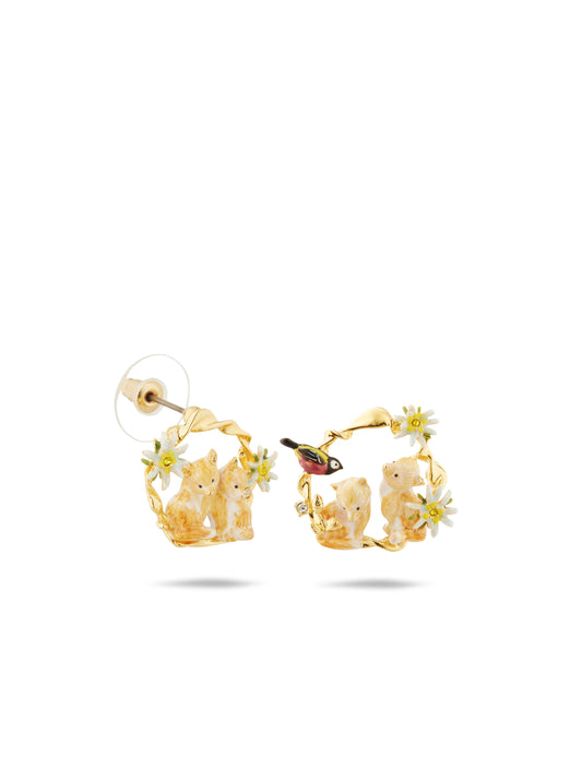 Asymmetrical Edelweiss Flower, Arctic Fox And Varied Tit Hoop Earrings