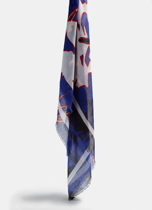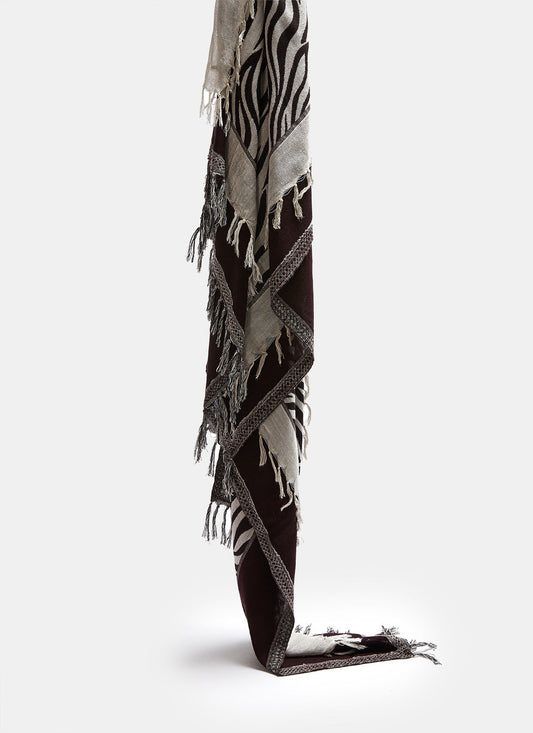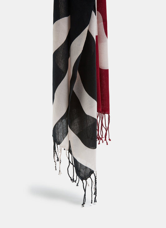 Black & Red Cotton Shawl / Scarf With Multiline Print