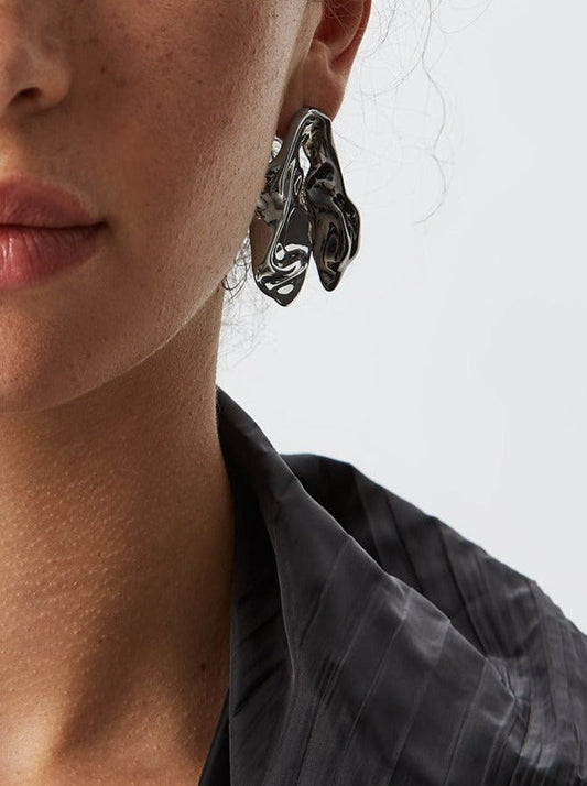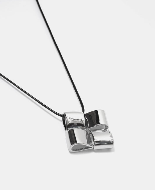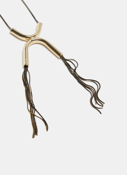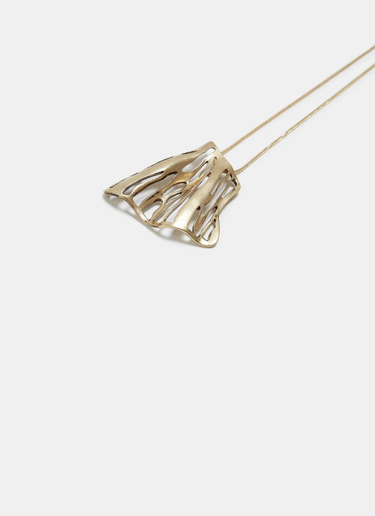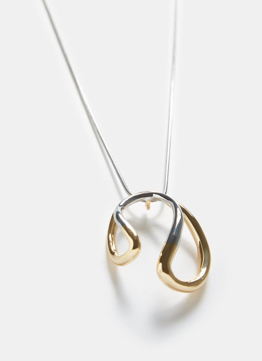 Gold/Silver Long Necklace With Wrinkled Pendant