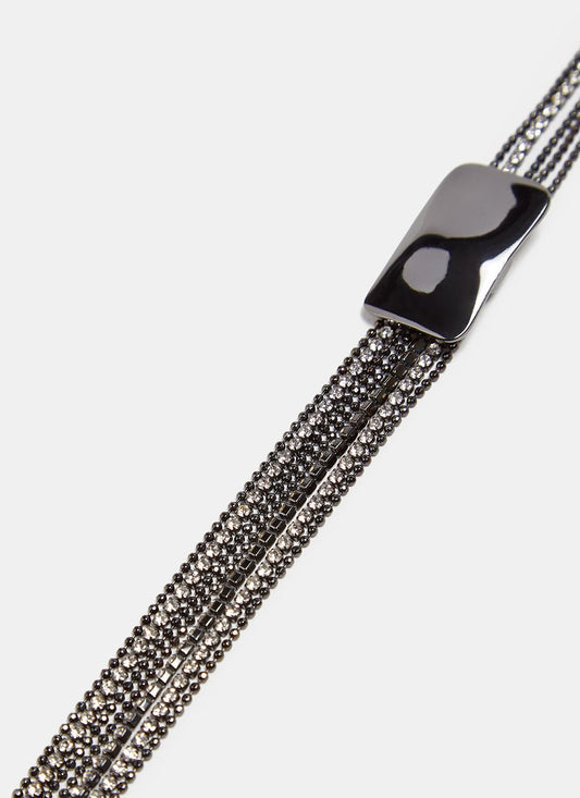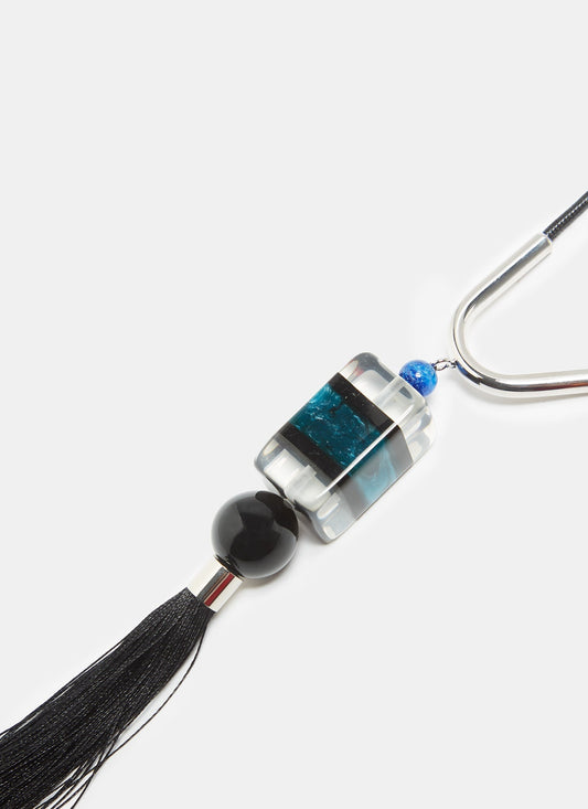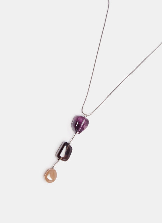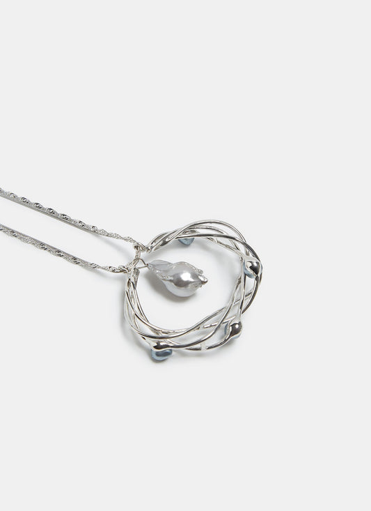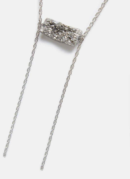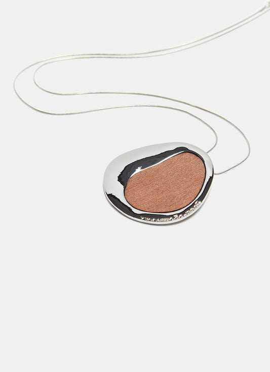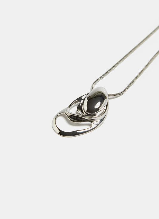 Silver Color Long Necklace With Oval-Shaped Pendant