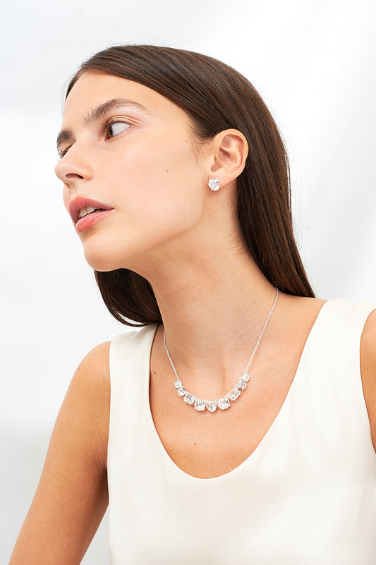 Silver 2 Square Stones La Diamantine Earrings