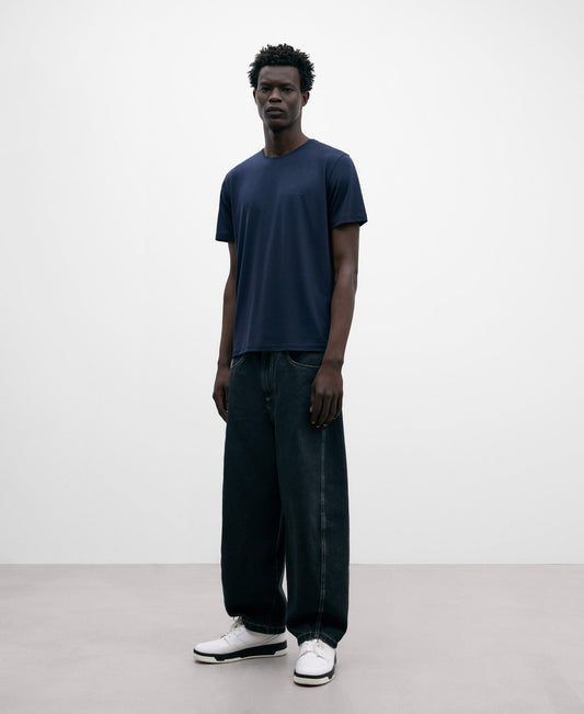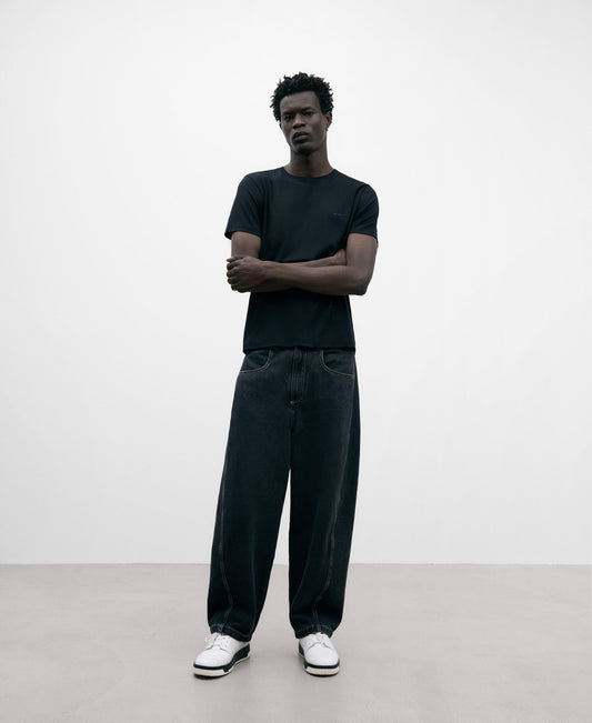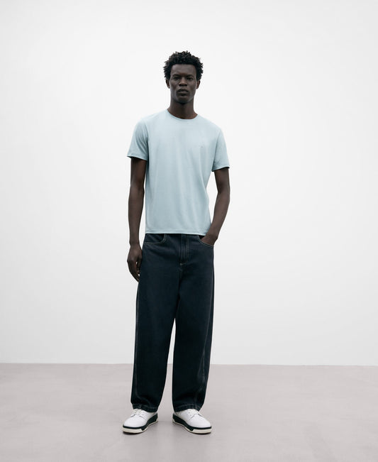 Charcoal Grey Microdrawing Fabric Crew Neck T-Shirt