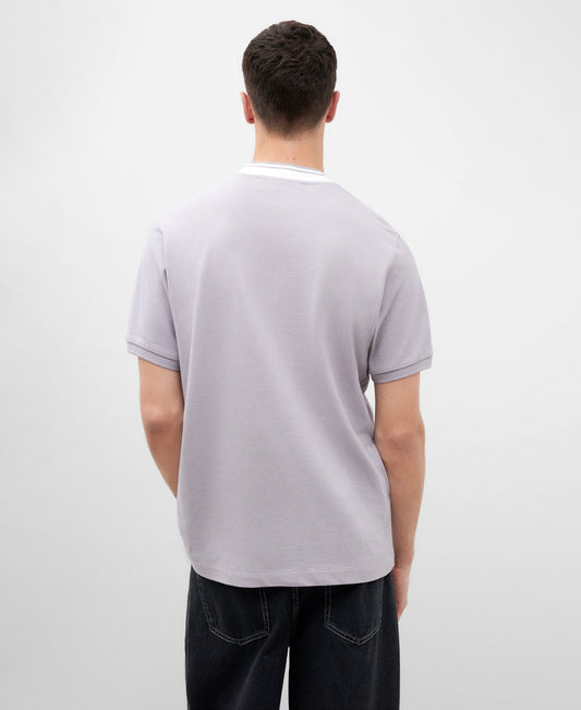 Grey Cotton Piqué Polo Shirt For Men