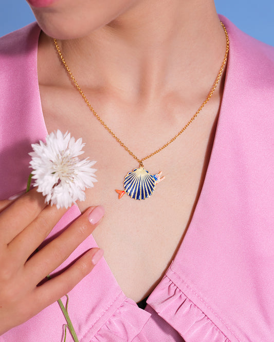 Sea Shell And Mermaid Pendant Necklace