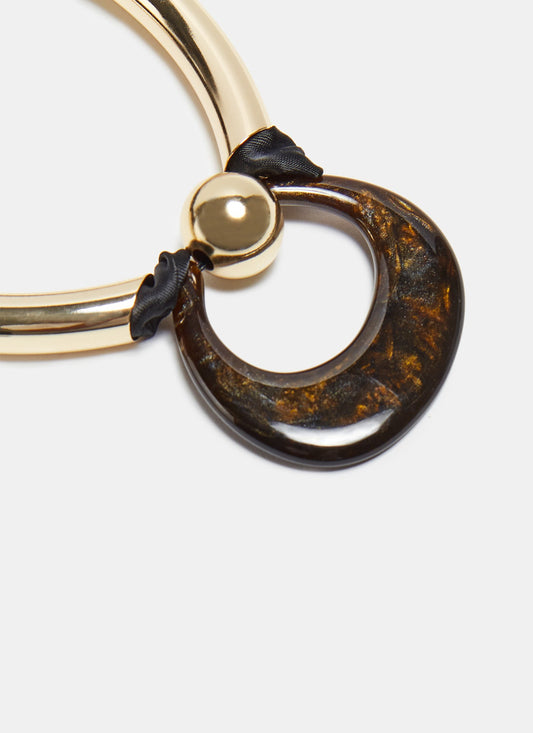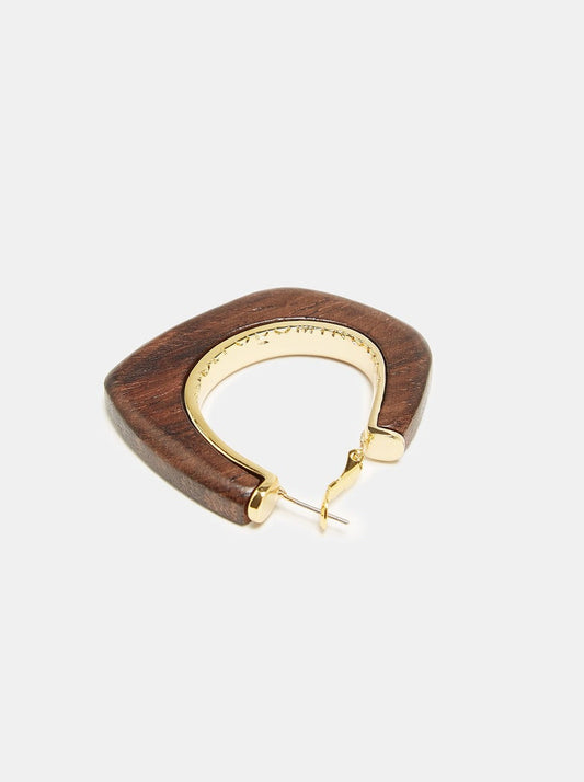 Gold/Chocolate Hoop Earrings With Irregular Wood Piece