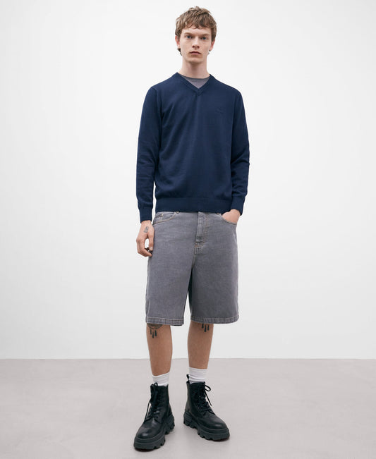 Dark Blue Mercerised Cotton Polo Shirt For Men