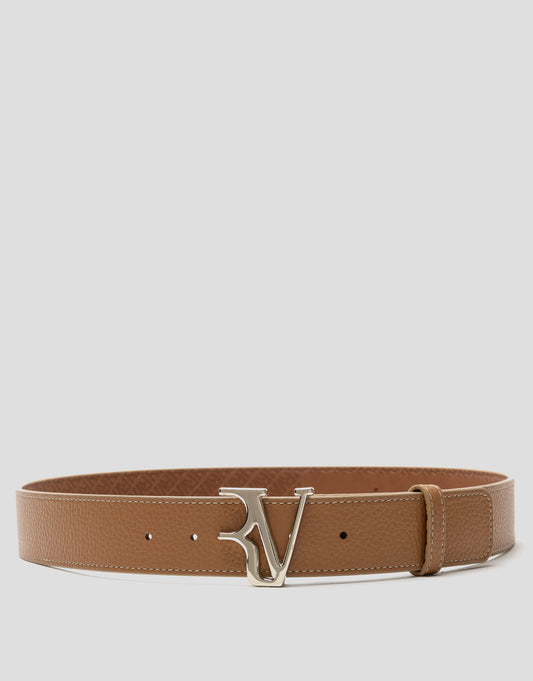 Camel leather belt with raw stitching