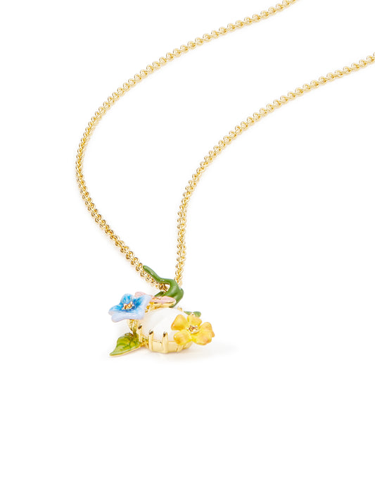 Pendant Necklace With 3 Colourful Jasmine Flowers And Faceted Stone | autr3031