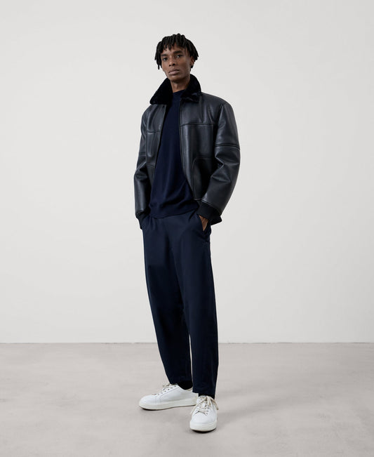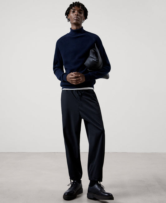 Navy Blue Merino Wool Perkins Collar Sweater