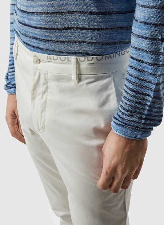 White Elastic Cotton Trousers