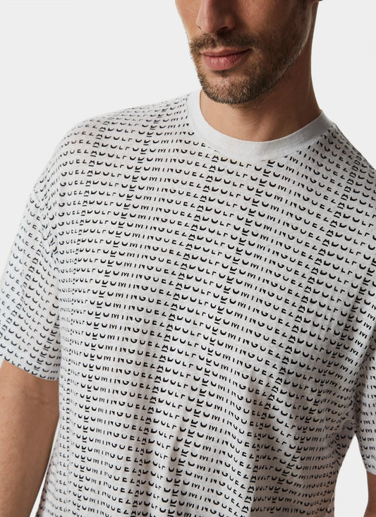 White Elastic Linen T-Shirt With Print