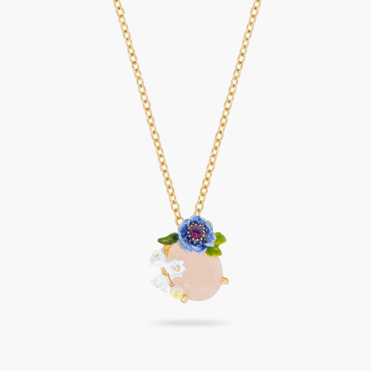 Pink Hellebore & Crystal Pearl Pendant Necklace