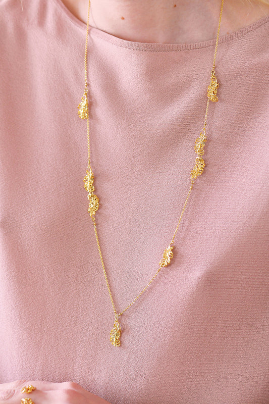 Golden Swan Feathers Long Necklace