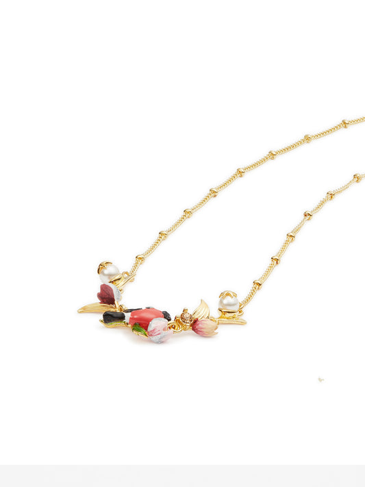 Hellebore Flower And Bullfinch Statement Necklace