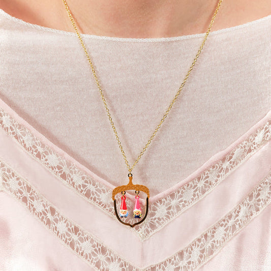 Hazelnut And Garden Gnome Pendant Necklace