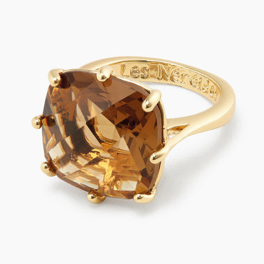 Golden Brown Diamantine Square Solitaire Ring